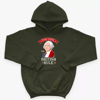 Kids’ Sponge Fleece Too Cool for British Rule Hoodie – George Washington Hoodie – Funny Independence Day Hoodies